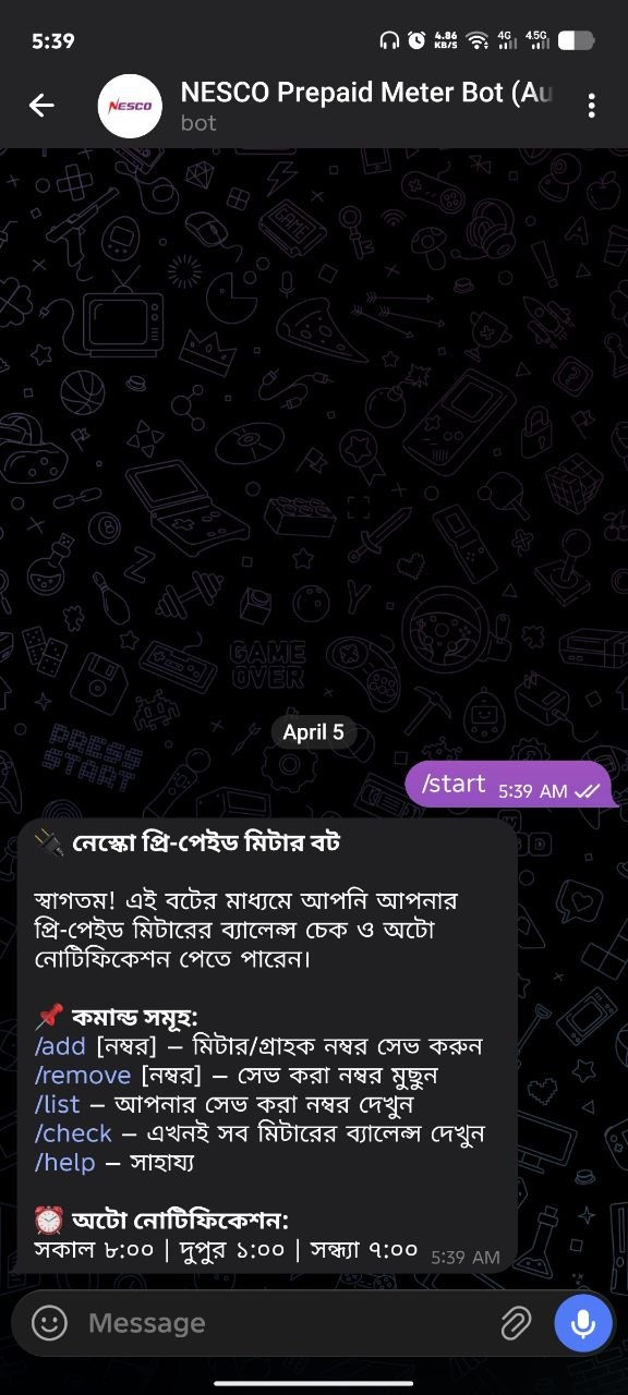আমরা সাধারণত ব্যস্ততার কারণে মিটারের ব্যালেন্স চেক করতে ভুলে যাই। আর নেস্কোর অফিশিয়াল ওয়েবসাইট বা অ্যাপে ঢুকে বারবার লগইন করাটাও বেশ সময়ের ব্যাপার। এই সমস্যার স্থায়ী সমাধান হলো এই টেলিগ্রাম বট।